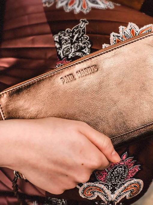 Doté d’une dragonne tressée, ce portefeuille à l’allure d’une pochette cuir vous accompagnera idéalement en soirée.