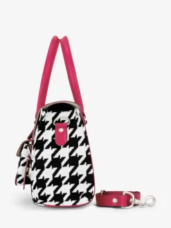 Une collection limitée nourrie de cuirs aux teintes vives et d’un tissu Jacquard au motif pied-de-coqextravagant.