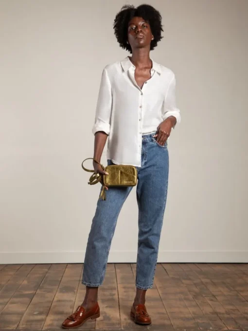 Ce sac bandoulière en cuir est équipée de deux compartiments intérieurs astucieusement pensés pour accueillir vos essentiels et votre smartphone, un petit mousqueton monté sur lanière pour accrocher vos clés.